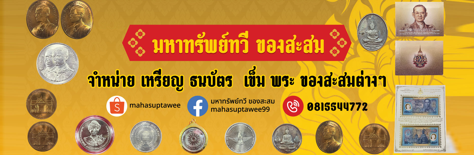 จำหน่าย เหรียญ ธนบัตร เข็มกลัด ของสะสม ตามวโรกาสต่างๆ หลายรัชกาล เหมาะกับให้เป็นของขวัญหรือเก็บสะสม ของแท้ 100% สภาพสวย ดูสอบถามสินค้าได้ทั้งทาง Shopee หรือ ไลน์ @mahasuptawee ติดตามสินค้าดีๆ น่าสะสมได้ทุกช่องทาง